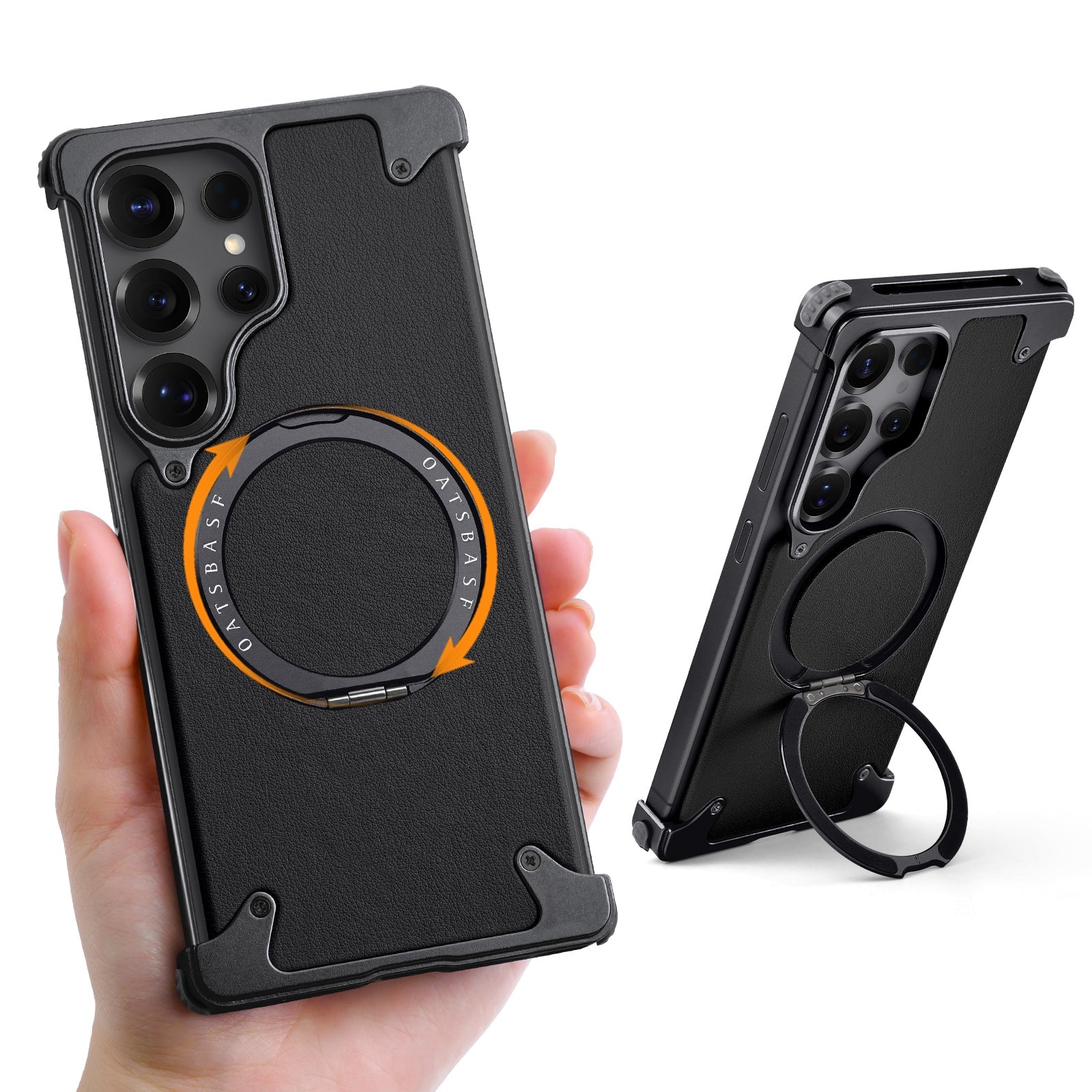 Luxury Metal Ring Bumper Leather Case With Magsafe For Samsung